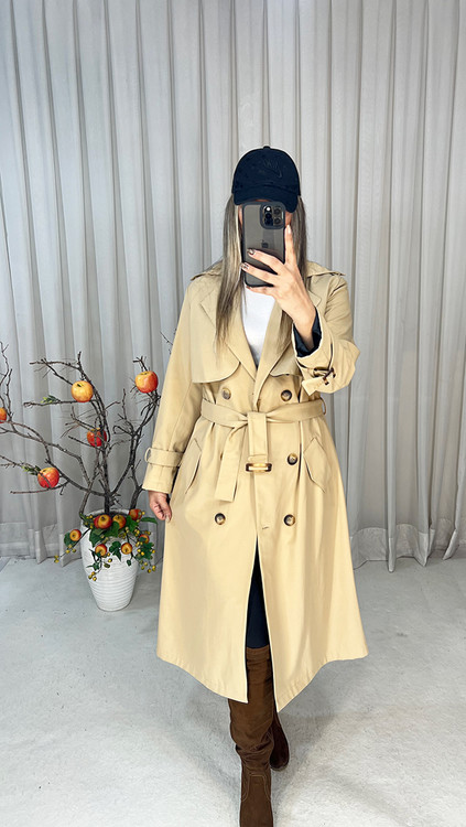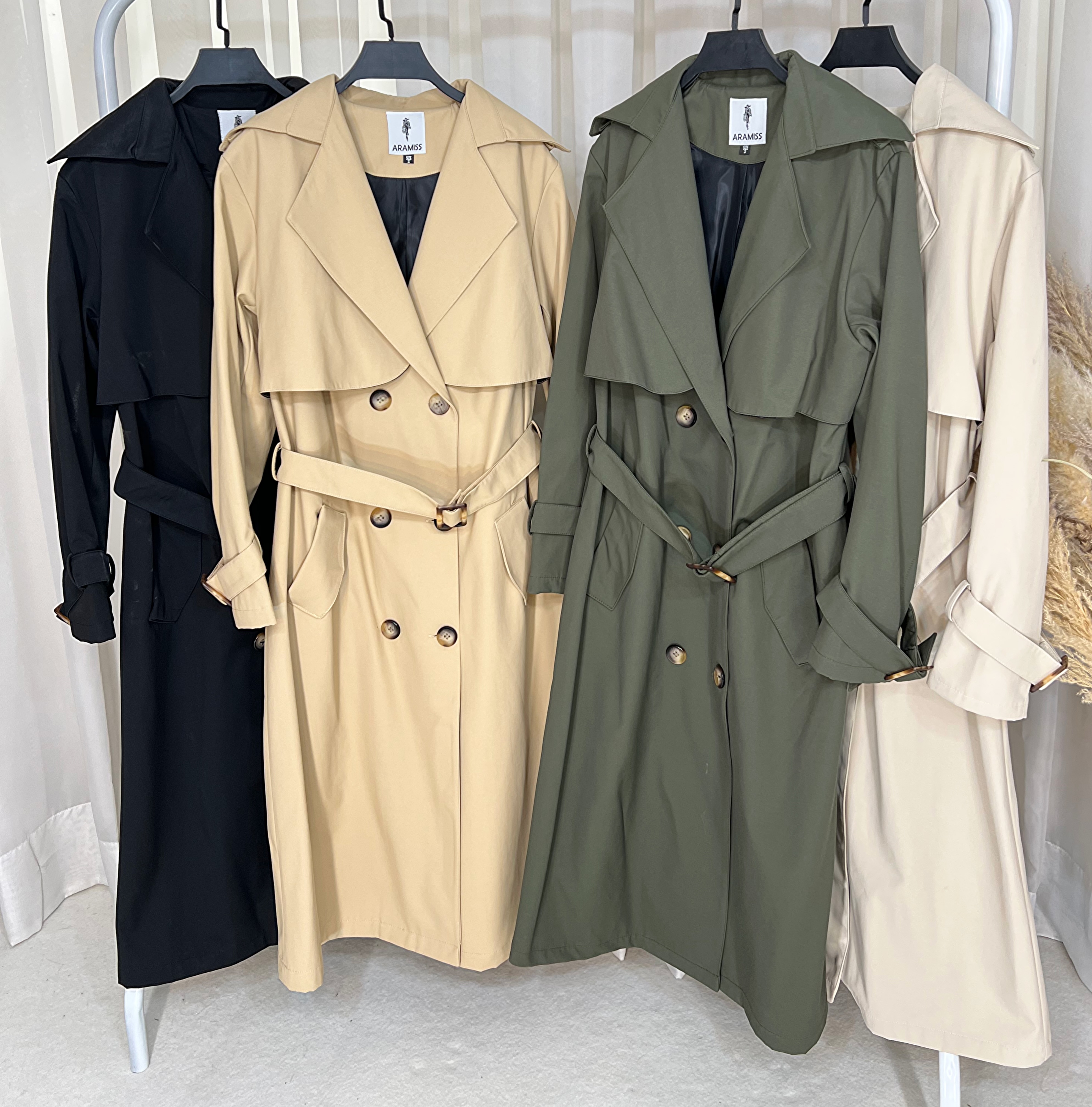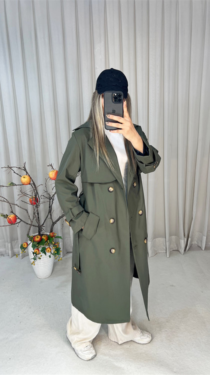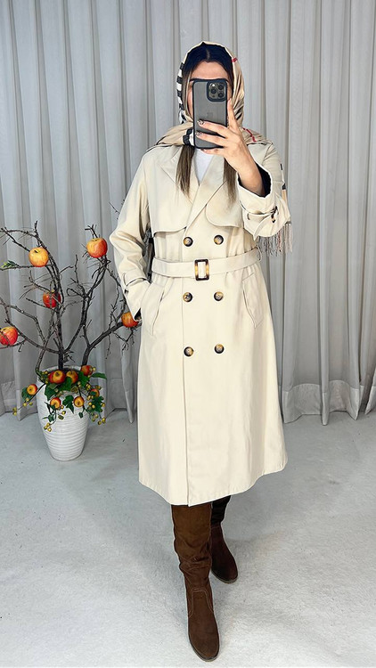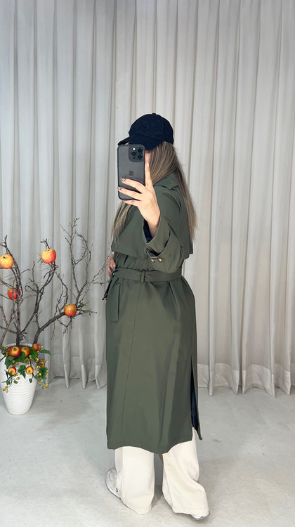 جلو دکمه دارد و دارای کمر بند ، پشت کار جاکدار